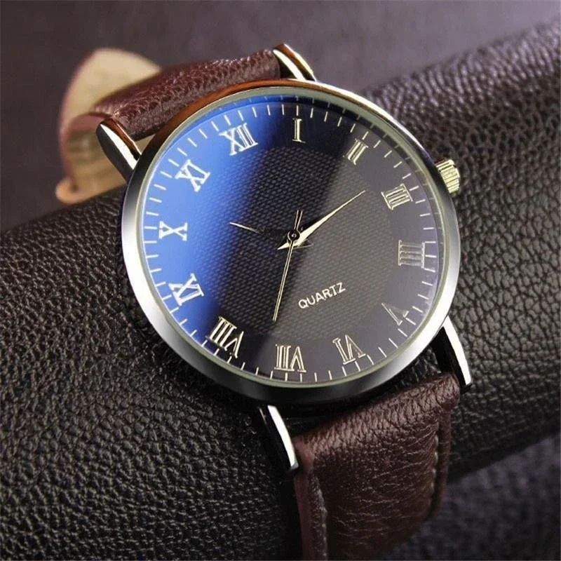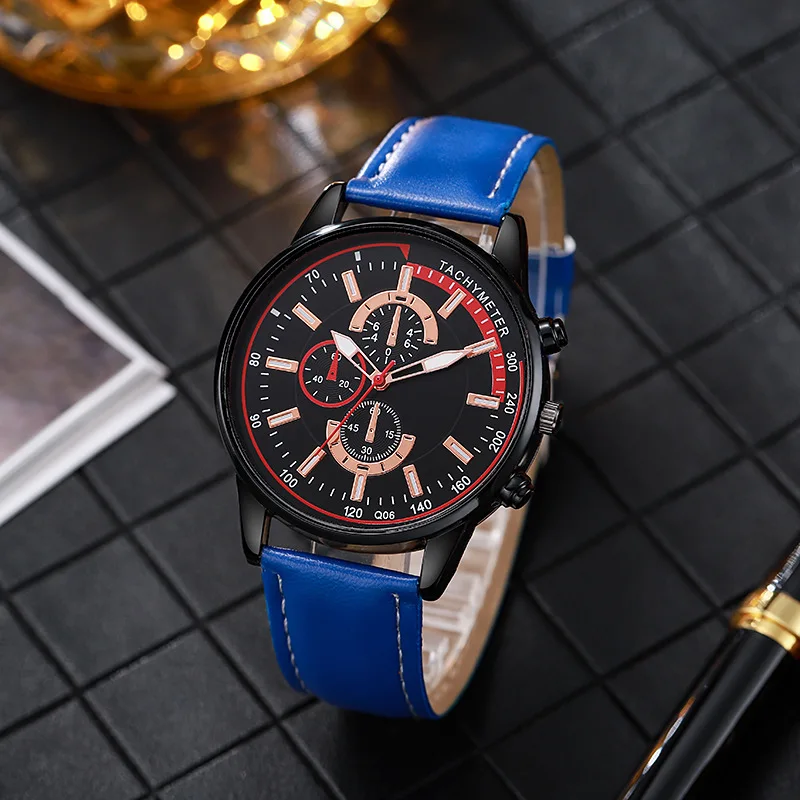 hot sale big dial men sports watch PU leather quartz men wrist watch