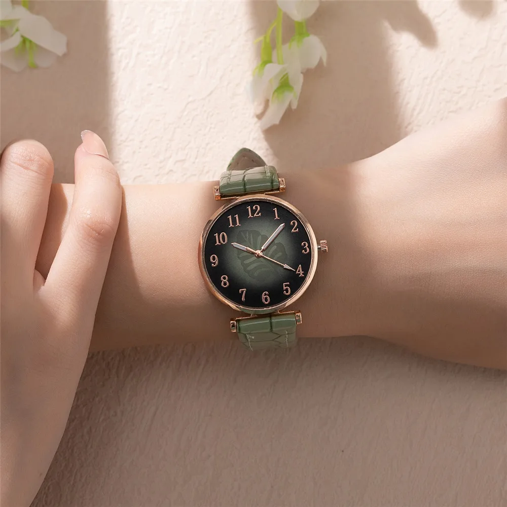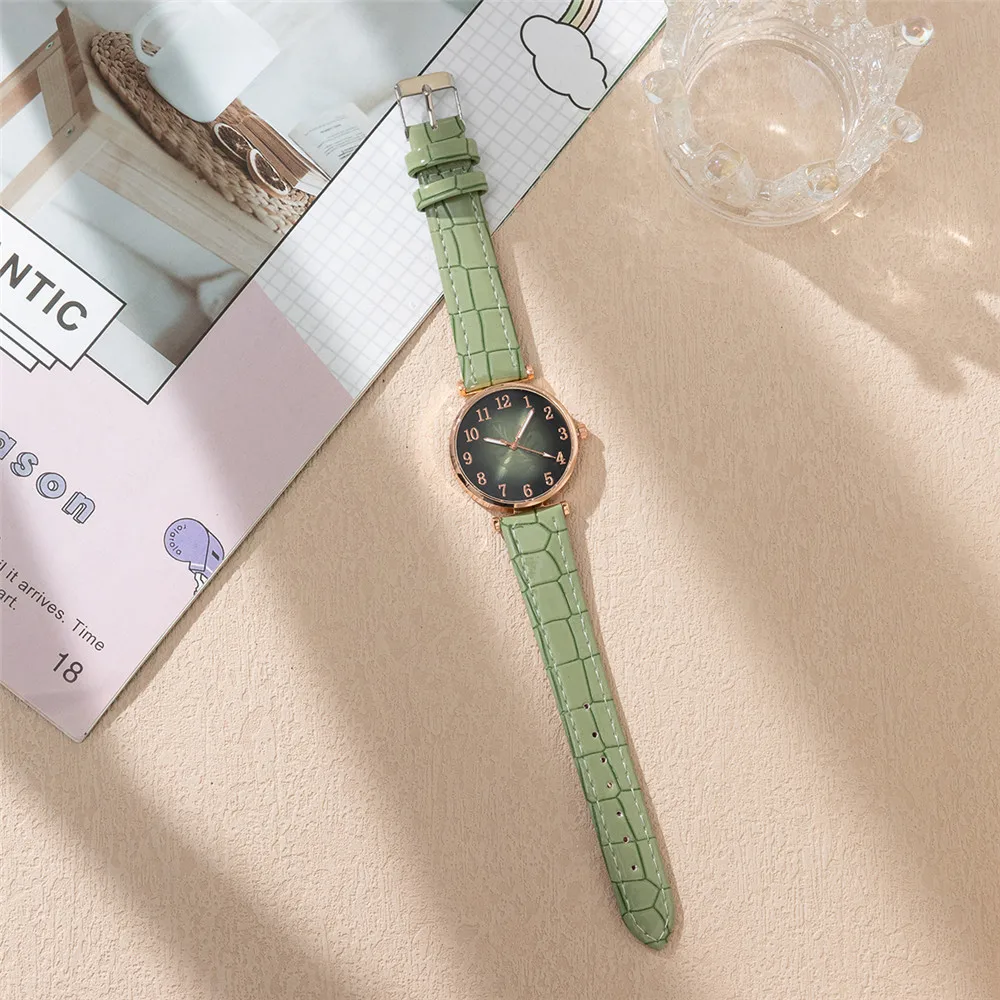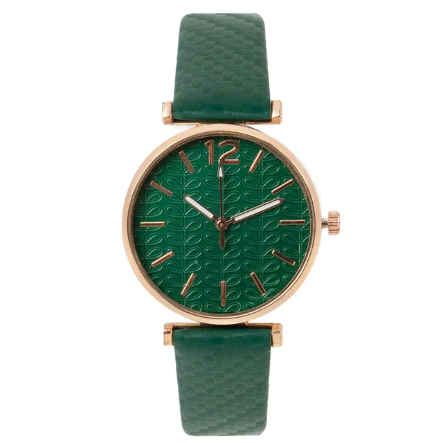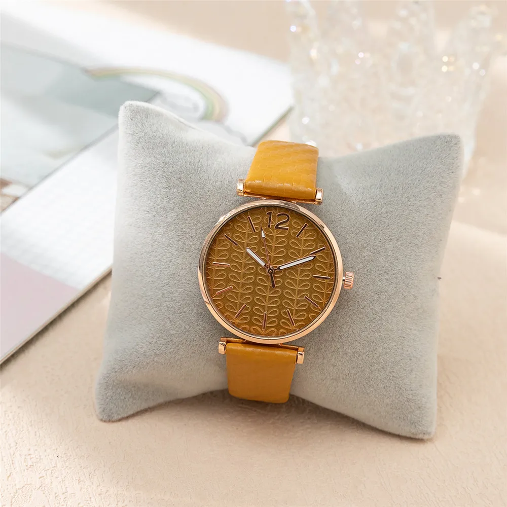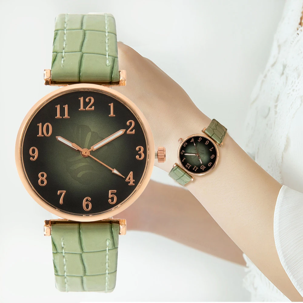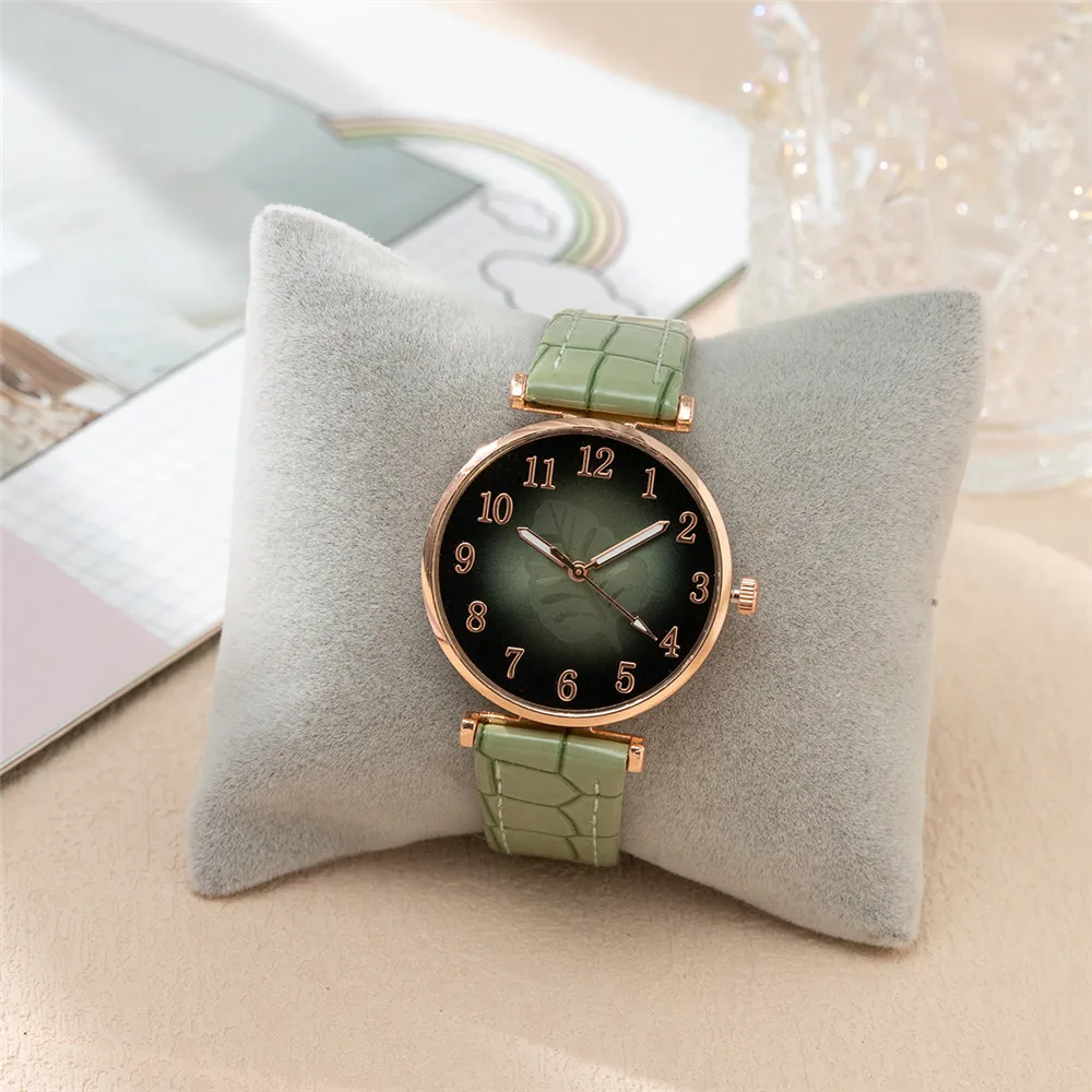 Simple Green Leaves Digital Style 2023 Women Quartz Watch Casual Leather Strap Ladies Clock Dress Watches