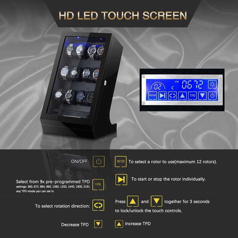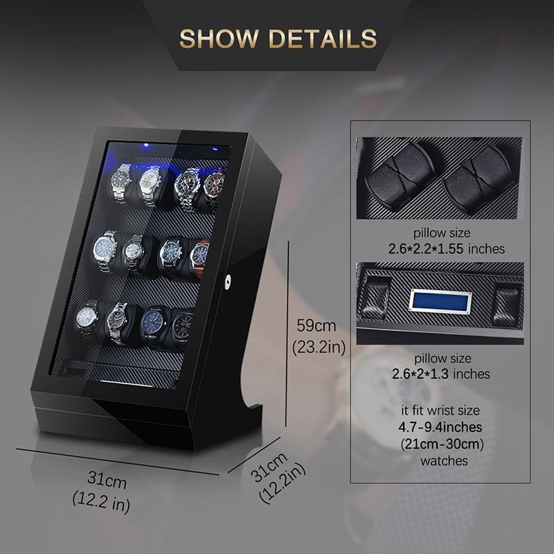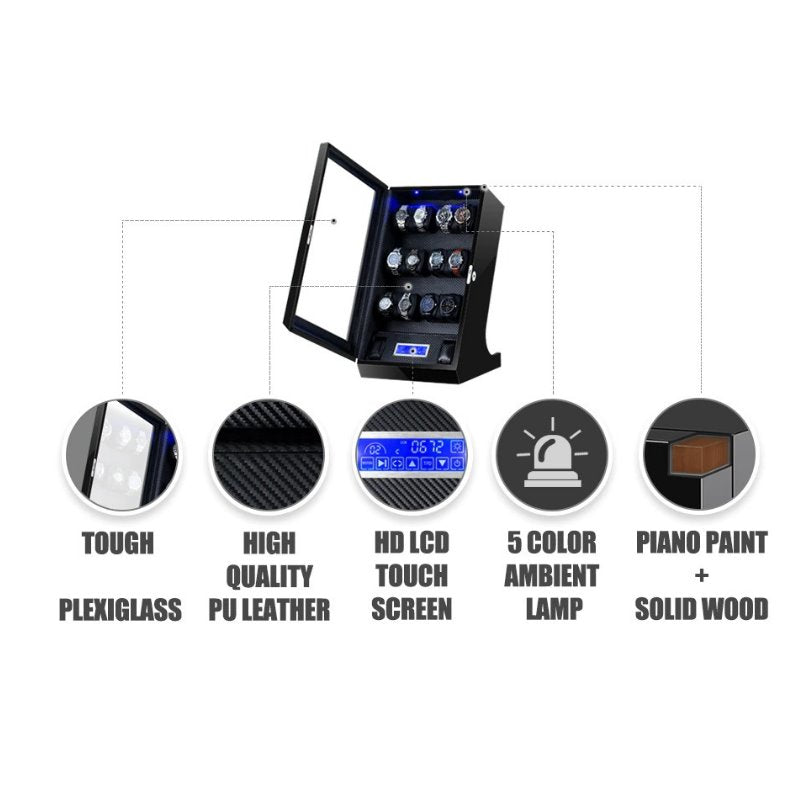 POD Customized Carbon Fiber Automatic Watch Winder & Organizer 12+2 Slots